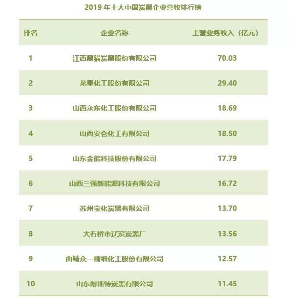 2019年十大中國炭黑企業營收排行榜.橡膠技術網