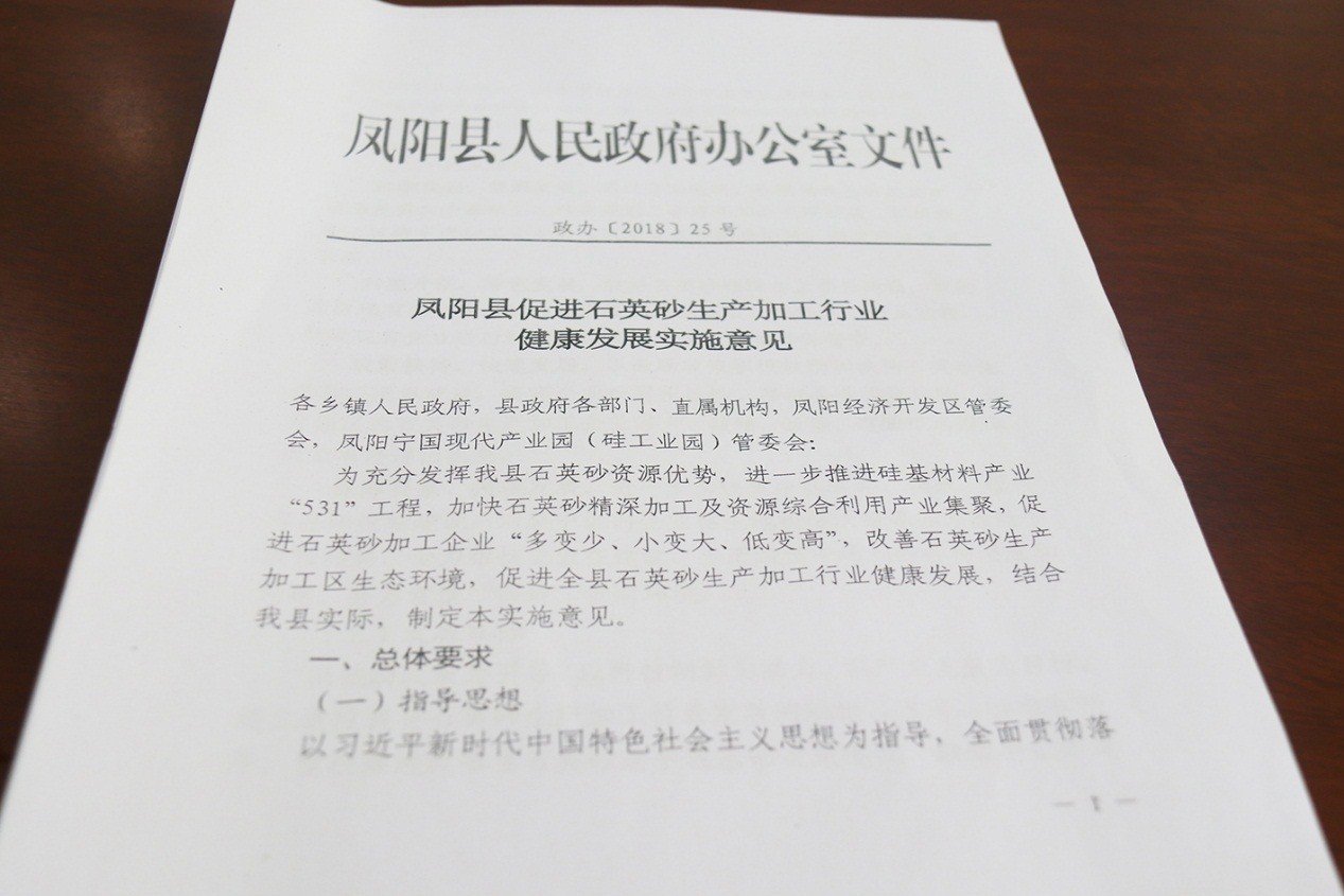 鳳陽有著“石英之鄉”的稱謂,是國內石英礦的主要產地之一,加工石英砂的歷史最早可以追溯到上世紀80年代。2018年,鳳陽縣工業經濟對經濟增長貢獻率達到41.8%;規上硅基新材料產業總產值達123億元,占全縣規上工業的47%;全縣硅基企業達80戶,占全縣規上企業的61.5%。多年以來,石英砂產業已成為鳳陽的一大支柱。