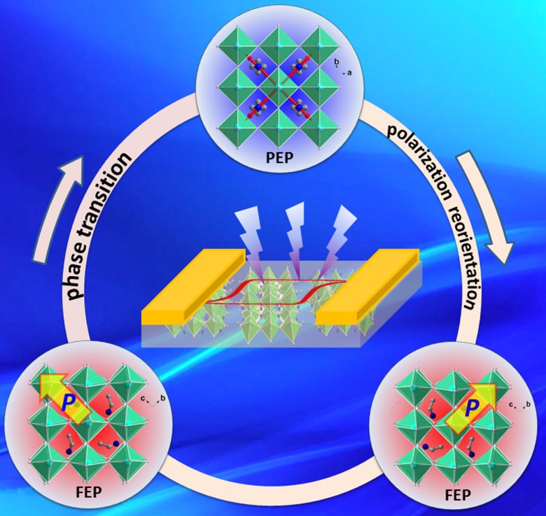 中國粉體網訊 鐵電體是一類重要的功能材料,它最顯著的特性是材料內部的自發極化能夠在外界條件(壓力、電場、光等)下改變方向。與單軸鐵電體相比,多軸鐵電體具有多個等效極化方向,極化翻轉更加容易。近年來,有機無機雜化鈣鈦礦因其豐富的物理特性,在光伏器件、存儲器、傳感器等領域具有廣闊的應用前景。然而,基于雜化鈣鈦礦實現具有光伏效應的多軸鐵電體仍然是需要解決的一個重要問題。