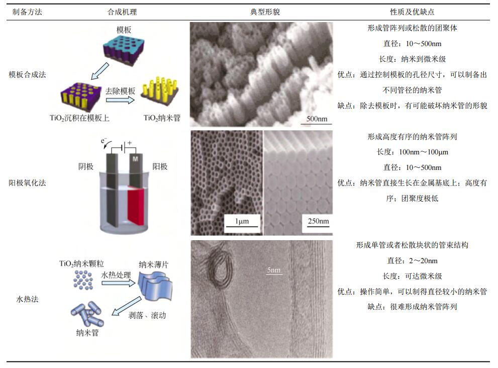 目前TiO2納米管的制備方法主要有模板合成法、陽(yáng)極氧化法和水熱合成法3種。