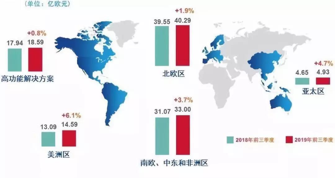 近日,圣戈班公布了其前三季度業績,前三季度銷售額324.71億歐元,同比增長了3.4%,第三季度營業收入107.94歐元,同比增長3.1%。盡管整體市場不太理想,但前三季度銷量仍增長1.4%,第三季度增長了1.7%,其中工作日的相對增加為前三季度銷量帶來1.5%的正面影響。