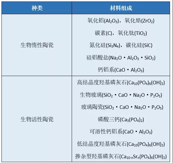 生物陶瓷的分類及組成