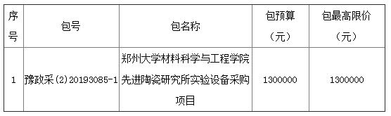 一、采購項目名稱:鄭州大學材料科學與工程學院先進陶瓷研究所實驗設備采購項目