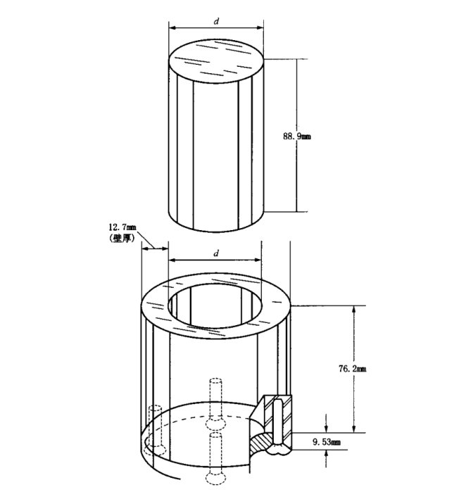 石英砂支撐劑的破碎率影響著裂縫導(dǎo)流能力。天然石英砂支撐劑的抗破碎能力測(cè)試應(yīng)使用規(guī)定尺寸范圍的破碎室,見(jiàn)下圖。