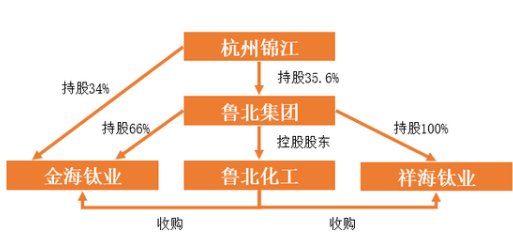 此次交易為關聯交易。天眼查顯示,金海鈦業股東為山東魯北企業集團總公司(下稱“魯北集團”)和杭州錦江集團有限公司(下稱“杭州錦江”),而前者是魯北化工及祥海鈦業的控股股東,后者持有金海鈦業34%的股份及魯北集團35.6%的股份。