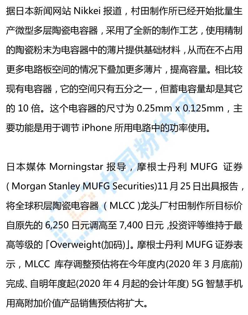 村田制作所公布了一款新5G手機元件,該元件體積縮小到原來產品的20%,此次公布的元件名為“多層陶瓷電容器”,可通過儲存電荷或釋放電荷使電路內保持一定電量,被廣泛應用于各種電子設備。