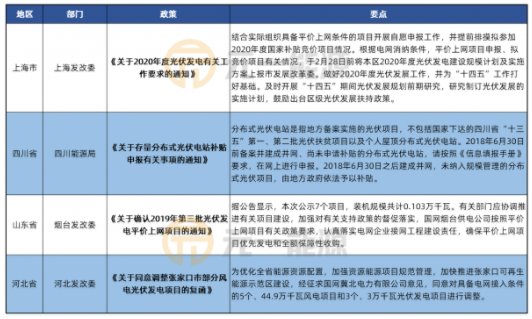 地方層面,多個(gè)地區(qū)在光伏扶貧、光伏項(xiàng)目建設(shè)及電力市場(chǎng)等方面均有相關(guān)政策出臺(tái)。