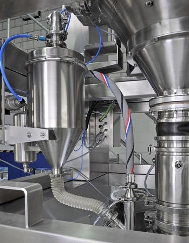 這條生產線可以實現將從上游設備如干燥機中出料的大塊、團聚的物料粉碎、篩分然后定量給料并最終分裝。由Frewitt設計制造的Profilling分裝系統可以一次性滿足上述所有需求,并可以快速的適應于任何生產環境中。粉碎最細可達50μm,可以采用粉碎系統或者專門的定量給料系統進行給料。分裝模塊適用于各種不同形狀材質的容器,精度可達±10g。