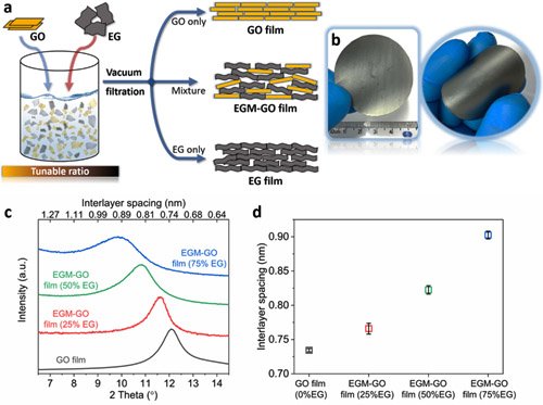 圖2. 片層間距可調節(jié)的復合石墨烯薄膜的結構表征