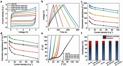 圖3. 片層間距可調節(jié)的復合石墨烯薄膜的電化學表征