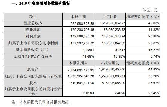 中國粉體網(wǎng)訊 日前,中科電氣發(fā)布2019年度業(yè)績快報(bào)。去年?duì)I業(yè)總收入為9.23億元,比上年同期增長49.03%;歸屬于上市公司股東的凈利潤為1.57億元,比上年同期增長20.67%。中科電氣主要業(yè)務(wù)有磁電裝備業(yè)務(wù)、鋰電負(fù)極業(yè)務(wù)。