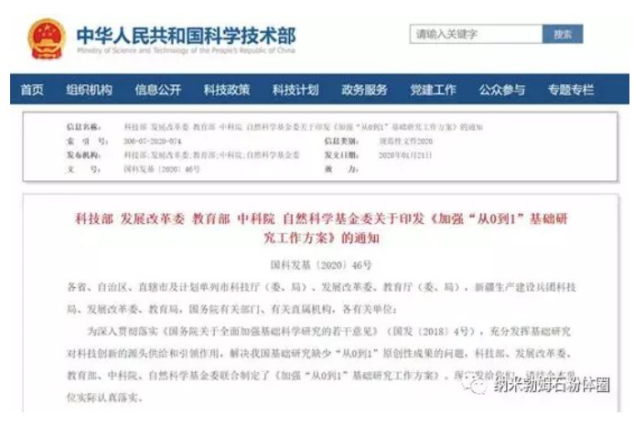 中國粉體網訊 近日,為解決我國基礎研究缺少“從0到1”原創性成果的問題,科技部、發展改革委、教育部、中科院、自然科學基金委聯合制定了《加強“從0到1”基礎研究工作方案》。