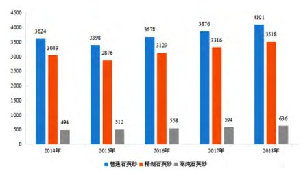 2014—2018年中國石英砂分品種產(chǎn)量圖(萬t)