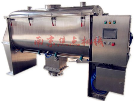 該機(jī)由混合槽、螺旋攪拌葉片和傳動(dòng)部件等組合而成,螺旋葉片一般做成二層,外層螺旋將物料從兩側(cè)向中央?yún)R集,內(nèi)層螺旋將物料從中央向兩側(cè)分流,使物料在混合槽內(nèi)形成對(duì)流混合,從而達(dá)到高均勻度混合。