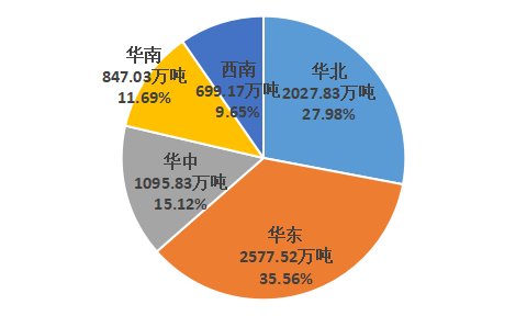 我國氧化鋁產量主要集中在華東及華北地區,2019年華東地區氧化鋁產量2577.52萬噸,占2019年全年氧化鋁產量比重的35.56,其次是華北地區的2027.83萬噸,占比27.98%。