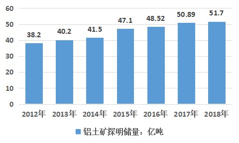 從礦石原料看,我國鋁土礦探明儲量近些年整體有所提升,截至2018年,全國鋁土礦探明儲量51.7億噸,同比增長1.59%。