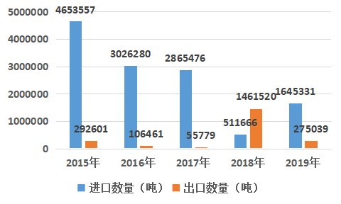 從進出口看,2019年我國氧化鋁進口量為165萬噸,累計增長221.6%,進口金額為467417萬元,累計增長122.3%,出口量為274862噸,累計下降81.2%,出口金額為115792萬元,累計下降78%。