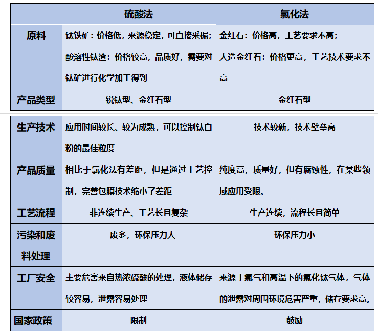 硫酸法和氯化法工藝對比