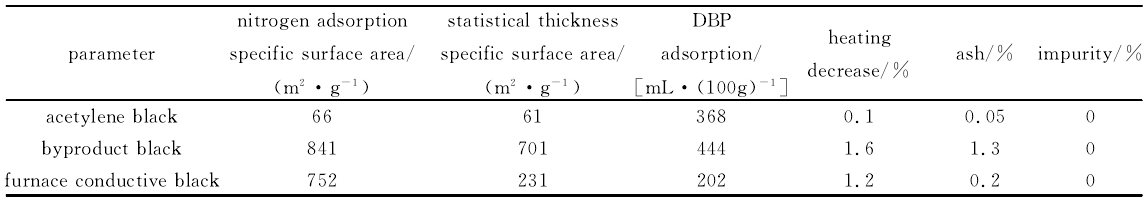 三種類型導(dǎo)電炭黑的主要理化指標(biāo)