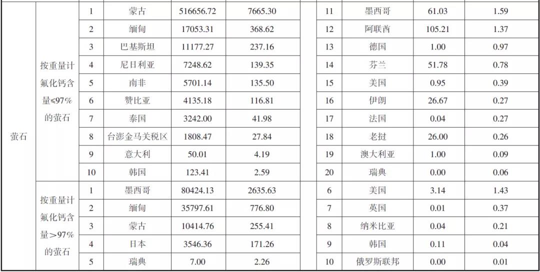 2019年我國螢石進口情況——按國家統(tǒng)計