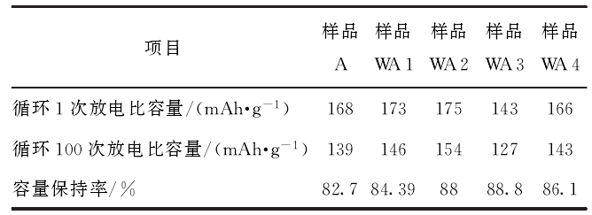 0.5C下正極材料樣品的放電比容量及容量保持率