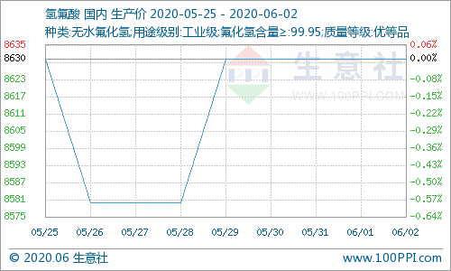 螢石下游氫氟酸市場價格走勢維持低位,截止2日國內氫氟酸市場價格為8630元/噸,氫氟酸市場價格是28日開始小幅走高,下游氫氟酸市場價格受螢石市場價格支撐小幅上漲,氫氟酸市場價格上漲滯后于螢石市場,螢石價格領漲氟化工產品。