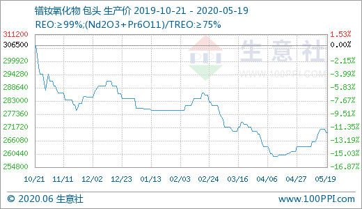 近期國內稀土行業需求較之前有所好轉,隨著歐美經濟逐步好轉,永磁廠家需求備貨增加,鐠釹系稀土價格持續上漲,但是輕稀土市場價格仍處于低位水平。國務院關稅稅則委員會公布第二批對美加征關稅商品第二次排除清單,清單中主要包括:稀土金屬礦、銀礦砂及其精礦、黃金礦砂、鎳合金板/片/帶/箔、鎳合金絲、鎳合金管、外徑不超過10厘米的鋁合金管、鈦管、鎳鎘蓄電池等。此次稀土金屬礦不再加征為反制美301措施所加征的關稅,并且對已加征的關稅稅款予以退還,存在促進稀土金屬礦進口的可能,這是鐠釹氧化物市場的一種利好支撐。