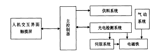 分選系統的作用主要是把光電檢測系統檢測發現的次品從物料中剔除,它由伺服系統、帶吸管的執行器和氣動系統組成。物料顆粒從檢測點運動到分選點時,執行器也運動到相應位置,并在雜質到達執行器的位置時使雜質被和氣動系統相連的吸管吸走,合格品沿正常運動軌道落入合格品槽。