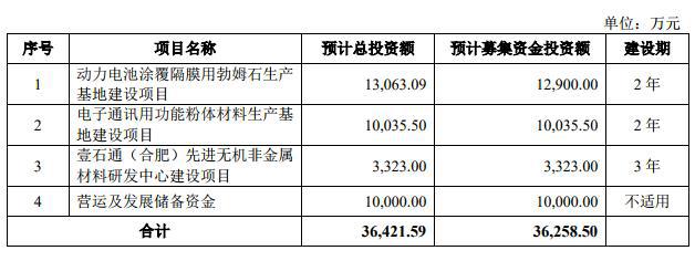 募集資金用途方面,壹石通表示,本次募集資金投資項目的資金使用計劃如下: