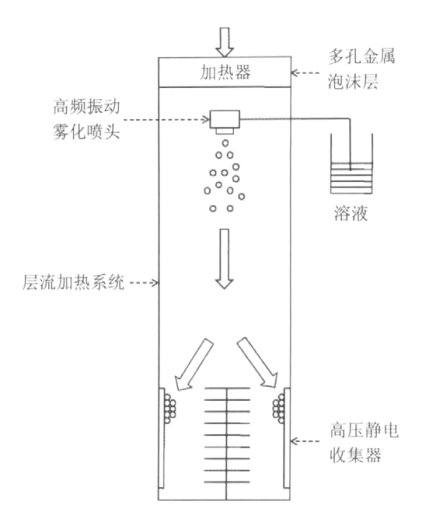 納米噴霧干燥裝置包括高頻振動霧化噴頭、層流加熱系統及高壓靜電收集器。納米噴霧干燥儀通過壓電陶瓷驅動多孔金屬膜片(孔徑為4、5.5和7μm)高頻上下振動,將料液從微孔中噴出形成具有精確大小的微滴氣霧進入熱干燥氣體中。