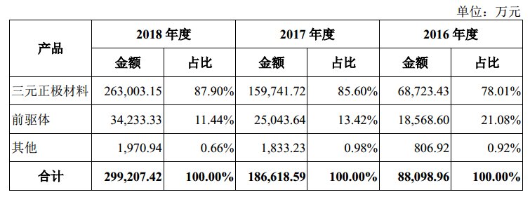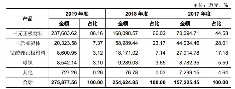 容百科技主營業務收入構成