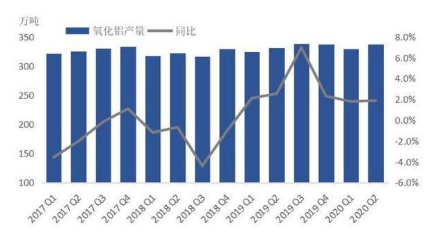 2020年6月底中國氧化鋁生產商庫存量約為95,000噸,環比增加35.71%,同比增加5.56%。