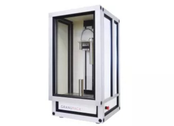 GranuPack是基于近年來(lái)的基礎(chǔ)研究成果而發(fā)展起來(lái)的一種自動(dòng)化、經(jīng)過(guò)改進(jìn)的振實(shí)密度測(cè)量方法。用自動(dòng)化裝置分析了連續(xù)震動(dòng)過(guò)程中粉體的行為。通過(guò)從壓實(shí)曲線精確測(cè)量了豪斯納比Hr、初始密度和振實(shí)密度(精度0.4%)。此外,通過(guò)振實(shí)曲線精確獲得動(dòng)力參數(shù)n1/2和最大密度ρ(∞)。