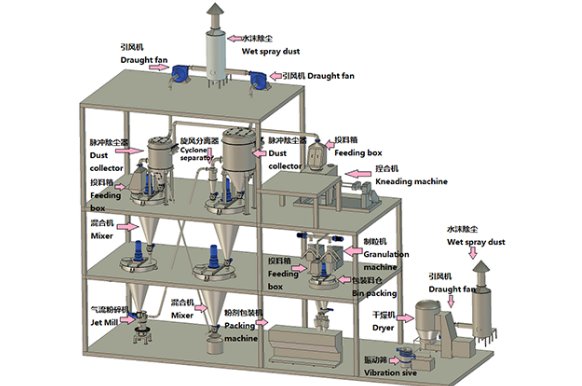 可配合各類干式粉磨機(jī)械(氣流磨、行星磨、球磨機(jī)、雷蒙磨、振動磨等)組成閉路系統(tǒng),提高工作效率;