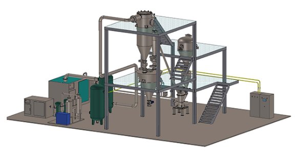 粉碎系統(tǒng)采用流化床氣流粉碎原理,粉碎效率高,產(chǎn)能大;