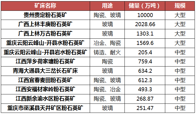 中國勘探發現的粉石英礦并不多,粉石英的儲量仍然有限。已探明的粉石英礦床分布以南方為主,集中于重慶、江西、貴州、廣西、福建、青海、湖南等地。