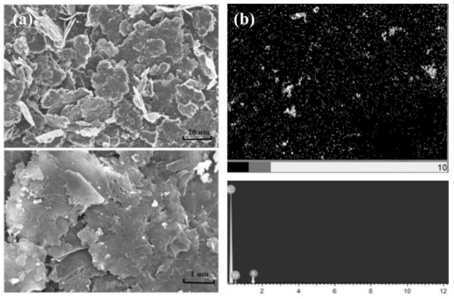 本發明的方法所制備的硫化膨脹石墨與具有大粒徑厚片層膨脹石墨相比,經過添加SO3‑P和DMF研磨改性的硫化膨脹石墨的微觀表面多孔性表現出顯著的增加,以及粒徑明顯的減小。