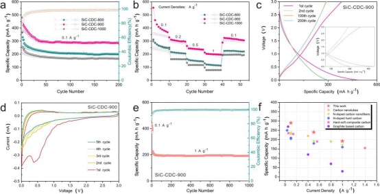 圖1. 碳化硅衍生碳的電化學性能圖。