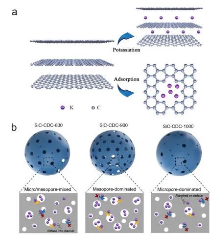 圖2. 碳化硅衍生碳的儲鉀機理圖。