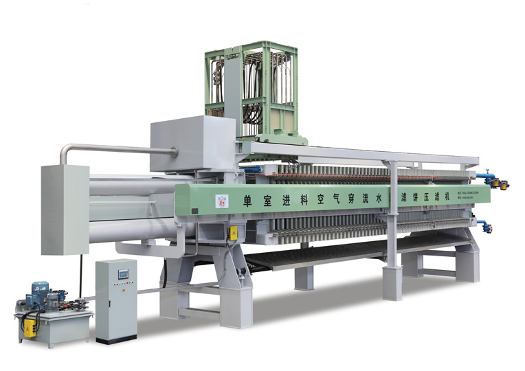1、單室進(jìn)料空氣穿流水洗濾餅壓濾機(jī)