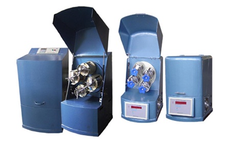 全方位行星式球磨機是在一大盤上裝有四個球磨罐,當大盤轉動(公轉)時,球磨罐在其公轉軌道上作自轉運動,大盤和球磨罐在做行星運動的同時,又可在一立體空間范圍內做180°翻斗式翻轉,并可人為設置在任意方位定點運行,。使所磨的材料更加勻細,并能解決部分材料的沉底和粘罐問題。
