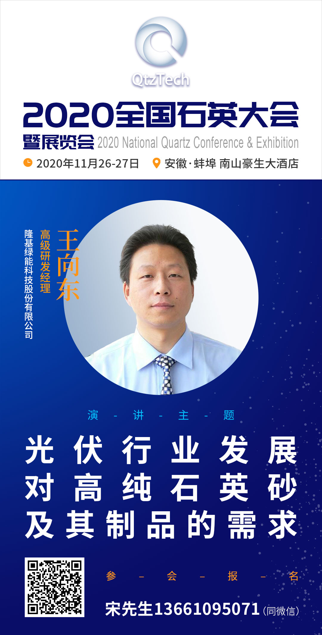 光伏產(chǎn)業(yè)的發(fā)展是時(shí)代進(jìn)步的必然過(guò)程。從原材料到制備再到產(chǎn)品運(yùn)行并受益,需要各個(gè)行業(yè)的配合。為了更好地了解市場(chǎng)變化,中國(guó)粉體網(wǎng)特意每年舉辦全國(guó)石英大會(huì),大會(huì)從2017年開(kāi)始,迄今已經(jīng)成功舉辦三屆,今年,中國(guó)粉體網(wǎng)全國(guó)石英大會(huì)再出發(fā)——“2020年全國(guó)石英大會(huì)”將于2020年11月26-27日在安徽蚌埠南山豪生大酒店舉行,會(huì)議邀請(qǐng)到全國(guó)石英相關(guān)領(lǐng)域的多位專家、學(xué)者及企業(yè)代表,共同分享石英在產(chǎn)業(yè)發(fā)展中扮演的重要角色。隆基綠能科技股份有限公司高級(jí)研發(fā)經(jīng)理王向東先生作為光伏產(chǎn)業(yè)發(fā)展的專家將分享《光伏行業(yè)發(fā)展對(duì)高純石英砂及其制品的需求》的報(bào)告,屆時(shí),他將從全球光伏市場(chǎng)的發(fā)展概況、光伏市場(chǎng)對(duì)石英制品的需求、單晶發(fā)展對(duì)石英坩堝的要求、單晶用坩堝對(duì)石英砂的要求、適用RCZ技術(shù)的石英加料器、石英制品生產(chǎn)未來(lái)發(fā)展方向六個(gè)方面全面分析石英與光伏之間的關(guān)系。