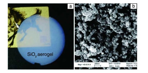 二氧化硅氣凝膠樣品照片(a)和SEM照片(b)