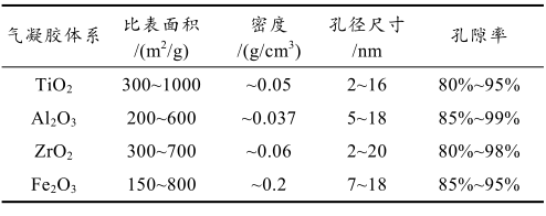 傳統的氣凝膠材料主要包含無機氧化物(如SiO2)氣凝膠、酚類和甲醛聚合形成的有機氣凝膠(RF氣凝膠)、RF氣凝膠碳化得到的碳氣凝膠以及金屬氧化物氣凝膠,其中,無機氧化物氣凝膠一直是研究人員廣泛研究和關注的材料。此外,各類氧化物氣凝膠的成功制備也越來越受到重視,比較常見的氧化物氣凝膠有Al2O3氣凝膠、ZrO2氣凝膠、TiO2氣凝膠、CuO氣凝膠等。
