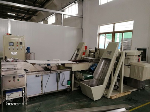 全自動雙聯渦流式光飾機是一種新型、高效、環保、節能的光整工藝設備。本產品為兩臺自動渦流式光飾機并聯而成。本產品具有自動化程度高,外形美觀、結構緊湊、節約能源、操作方便、變速范圍大、運轉平衡、噪音低、研磨效率高等特點。