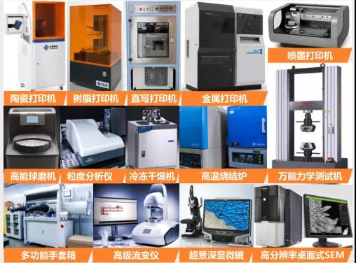 研究所購買及研發了多款桌面和工業級3D打印設備。其中包括:DLP光固化機、低溫直寫機、噴墨打印機、SLM金屬打印機等,種類齊全,可滿足各類打印需求。同時擁有各類高端性能測試設備用于材料和打印件測試。