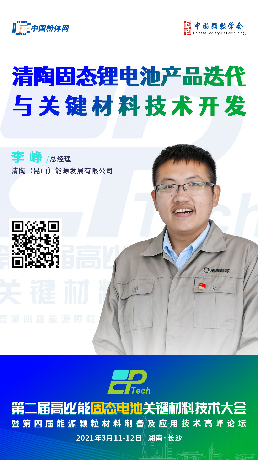 2021年3月11-12日,由中國粉體網、中國顆粒學會能源顆粒材料專委會主辦,長沙礦冶研究院先進材料研究所協辦的第二屆高比能固態電池關鍵材料技術大會將在長沙吉美國際會展酒店隆重舉行,屆時,清陶能源總經理李崢將帶來報告《清陶固態鋰電池產品迭代與關鍵材料技術開發》,與參會嘉賓分享相關研究成果。