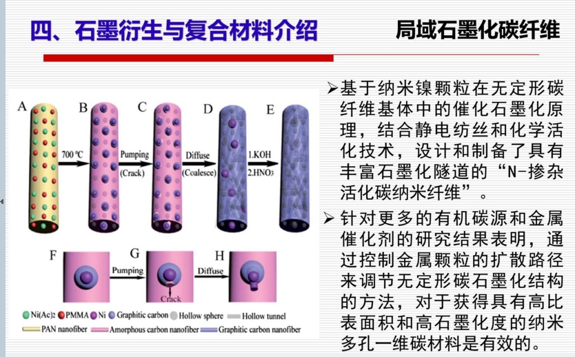 在石墨衍生與復(fù)合材料介紹一部分,她對(duì)石墨烯、石墨烯復(fù)合材料、局域石墨化碳纖維、高容復(fù)合材料一一講解。