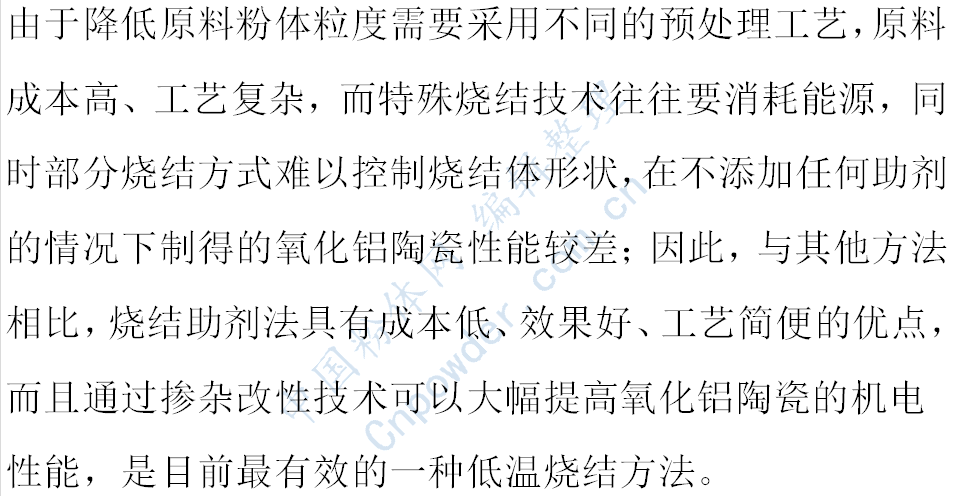 中國粉體網訊 眾所周知,氧化鋁陶瓷由于其具有高強度、高硬度、耐高溫、耐腐蝕、化學穩定性良好等優異的性能,而且原料來源廣泛、價格低廉,在電子、航空、機械、紡織、化工、建筑等領域得到了非常廣泛的應用。然而,由于Al2O3的熔點高達2050℃,氧化鋁陶瓷的燒結溫度也較高,這就需要消耗大量的能源,而且對設備的要求也較高。所以,降低氧化鋁陶瓷的燒結溫度非常重要。