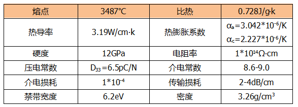 表:AlN薄膜的性能參數(shù)
